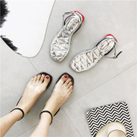 桂兰珊(Guilanshan) 2020方头露趾透明胶片水晶鞋女夏学生拼色舒适平底凉鞋漆皮鞋
