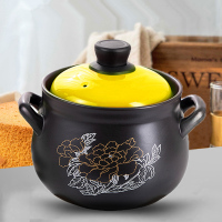 3500ML(5-6人用)金花黄盖燃煤气专用砂锅炖锅 煲仔饭砂锅 煲汤锅 山背瓷业
