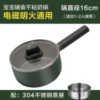 <暗夜绿色套装> 美的奶锅宝宝婴儿辅食锅麦饭石不粘小奶锅泡面汤锅电磁炉燃气通用