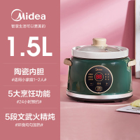 美的电炖锅家用多功能全自动煲汤锅迷你砂锅养生陶瓷炖盅煮粥神器 墨绿色-1.5L