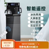 美菱立式家用饮水机下置水桶多功能冷热全自动桶装水智能茶吧机 曜石黑[双壶双门+双出水口+温度显示屏] 冰温热
