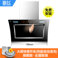 750宽双电机+人体感应+(八键大屏自动清洗带时间温度显示) 新飞双电机自动清洗抽油烟机壁挂式抽烟机家用厨房侧吸式吸油