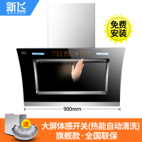 900宽双电机+人体感应+(八键大屏自动清洗带时间温度显示) 新飞双电机自动清洗抽油烟机壁挂式抽烟机家用厨房侧吸式吸油