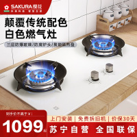 樱花(SAKURA)燃气灶5.0大火力加厚防爆钢化玻璃双灶煤气灶台嵌两用全铜火盖灶具白色燃气灶ADB02(液化气)