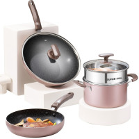 苏泊尔SUPOR荧彩不粘锅具麦饭石色炒锅煎锅汤锅蒸锅三件厨具套装
