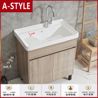 苏宁放心购实木洗衣柜陶瓷洗手盆带搓板阳台卫生间洗衣室内外落地柜一体盆A-STYLE