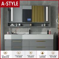 苏宁放心购岩板浴室柜现代轻奢洗手台一体盆卫生间洗漱台洗脸盆柜组合智能镜A-STYLE