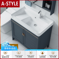 苏宁放心购太空铝洗衣柜阳台洗衣池陶瓷洗手台盆落地式组合柜带搓衣板浴室柜A-STYLE