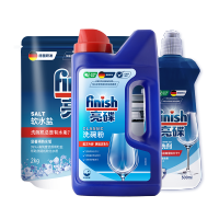 finish亮洗碗机专用洗涤剂套餐洗碗块洗碗三件套(2公斤盐+漂洗剂500ml+大多效30块)西门子美的海尔洗碗机洗碗粉