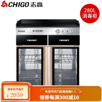 志高(CHIGO)消毒柜 商用 立式双开门 食堂餐厅 酒店厨房餐具消毒碗柜 不锈钢大容量保洁柜 柜式280L消毒柜 臭氧