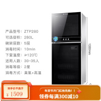 Chigo/志高消毒柜立式家用大容量商用高温不锈钢迷你双门消毒碗柜 黑圆点280L 臭氧