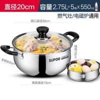 20cm/汤锅+蒸格/电磁炉通用 苏泊尔汤锅304不锈钢锅具家用24加厚复底泡面电磁炉燃气煮锅炖锅