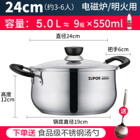 24cm [加购 送汤勺] 苏泊尔汤锅304不锈钢加厚复底家用奶锅燃气电磁炉炖锅煮粥汤锅具