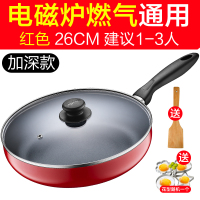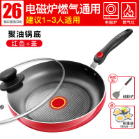 26cm红色燃气电磁炉通用/带盖 苏泊尔平底锅不粘锅煎锅煎烙饼牛排鸡蛋小号家用多功能燃气灶适用