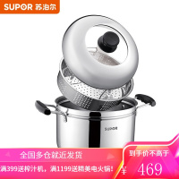 苏泊尔SUPOR蒸滋味复底304不锈钢汤蒸多用锅明火电磁炉通用24cm汤锅单层蒸笼SZ24S1 不锈钢色