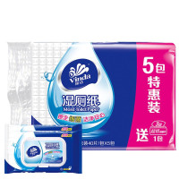 维达(Vinda) 湿巾 居家洁净湿厕纸40片*5包 量贩装(送超韧150抽软抽*1包)(新旧包装交替发货)