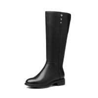 红蜻蜓高筒靴女正品英伦粗跟长筒靴真皮加绒百搭皮靴棉鞋