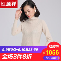 恒源祥秋冬羊绒衫女堆堆领2018新款高领针织衫毛衣镂空勾花打底衫