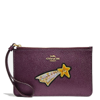【直营 圣诞限量版】蔻驰(COACH) 星星贴花硬真皮拉链女士小号零钱包手拿包女手包