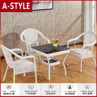 苏宁放心购奶茶店带伞户外桌椅阳台庭院休闲藤椅外摆酒吧室外咖啡厅桌椅组A-STYLE家具