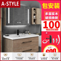 苏宁放心购新款实木浴室柜轻奢智能镜洗手洗脸盆柜组合卫生间洗脸面盆洗漱台A-STYLE