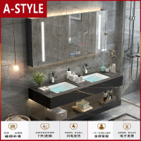 苏宁放心购双盆岩板浴室柜组合卫浴智能轻奢现代简约洗手池洗脸卫生间洗漱台A-STYLE