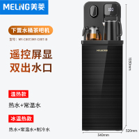 美菱立式智能饮水机家用下置水桶冷热多功能全自动桶装水茶吧机 黑色-双出水口-显屏-遥控 冰温热