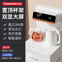 长虹家用智能立式饮水机下置水桶冷热多功能全自动2023新款茶吧机 [置顶杯架双显屏]白色+双出水口+遥控 温热