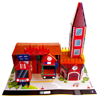 科博[我的城市]早教益智3岁以上儿童玩具带磁性彩窗磁力片157片装消防局拼装积木磁性男孩女孩玩具