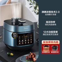 美的电压力锅浓香煲汤家用加厚双胆高压锅4.8升全自动智能饭煲 蓝色