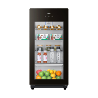 海尔家用客厅办公室小型保鲜柜冰吧柜透明玻璃柜98L 黑色98L