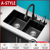 苏宁放心购黑色纳米水双 厨房洗菜盆304不锈钢手工家用洗碗池套餐A-STYLE