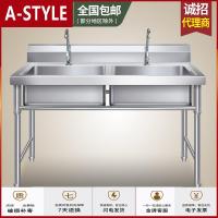苏宁放心购厨房不锈钢水商用带支架洗菜盆食堂三洗碗水池单手工双A-STYLE