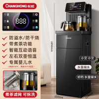 长虹家用智能立式饮水机下置水桶冷热多功能全自动2023新款茶吧机 [防溢防干烧煮茶+语音]黑色+双出水口+遥控 冰温热
