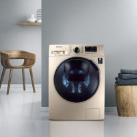 三星(SAMSUNG) 9公斤 大容量 中途添衣 泡泡洗直驱变频 洗烘一体 智能滚筒洗衣机 家电 金色WD90K5410