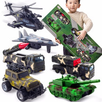 过凡 儿童玩具男孩汽车坦克音乐声光合金玩具回力惯性车仿真模型套装飞机军事车装甲车工程车越野车