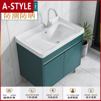 苏宁放心购家用阳台实木洗衣柜陶瓷洗衣盆带搓衣板洗衣洗手台盆一体洗衣池A-STYLE