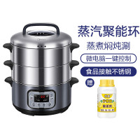 美的电蒸锅家用多功能大容量蒸菜锅不锈钢多层电蒸笼蒸煮焖一体锅10L 银灰色