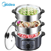 美的(Midea)多功能电蒸锅电火锅电煮锅电热锅 三层10L 可蒸大闸蟹 不锈钢机身10升