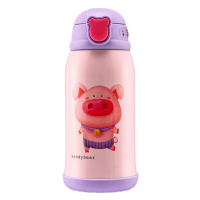 【买一送十】杯具熊 beddybear 母婴幼儿童 316不锈钢大容量三盖保温壶便携式背带宝宝水杯吸管三用杯 礼盒款小猪
