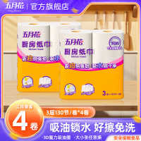 五月花厨房用纸3层130节4大卷厨房专用纸巾料理纸吸油纸抹布一次性