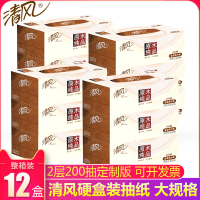 清风抽纸盒装原木硬盒装纸巾200抽餐巾纸盒抽整箱12盒抽取式面纸