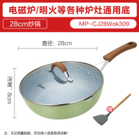 美的炒锅家用麦饭石不粘锅煎炒两用炒菜锅电磁炉燃气通用不沾锅具 【抹茶绿】