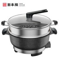 电热锅多功能家用电火火锅锅麦饭石电炒锅蒸煮饭一体式不粘炒菜锅新丰腾尊味30cm标配+201不锈钢蒸笼1个