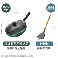 美的麦饭石炒菜锅不粘锅家用电磁炉适用燃气煤气灶炒锅平底锅 [30cm]燃磁通用炒锅+硅胶铲