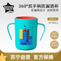 汤美星360°防漏洒水杯新生婴儿带手柄防摔防洒漏易清洗水杯 蓝色200ml