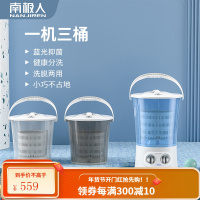 728南极人小型迷你洗衣机家用洗袜子神器内衣裤婴儿童半自动洗脱 (一机三桶)三色+蓝光抑+送沥水篮