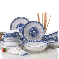 瓷物语青花餐具中式套装陶瓷碗筷盘子家用微波炉适用(28件)