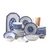 瓷物语青花餐具中式套装陶瓷碗筷盘子家用微波炉适用(45件)