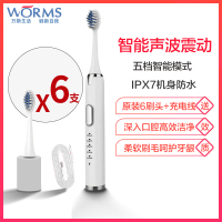 worms电动牙刷男女成人家用充电式软毛全自动牙刷防水声波牙刷 陶瓷白 五档位充电款配(原装6刷头+USB充电线)